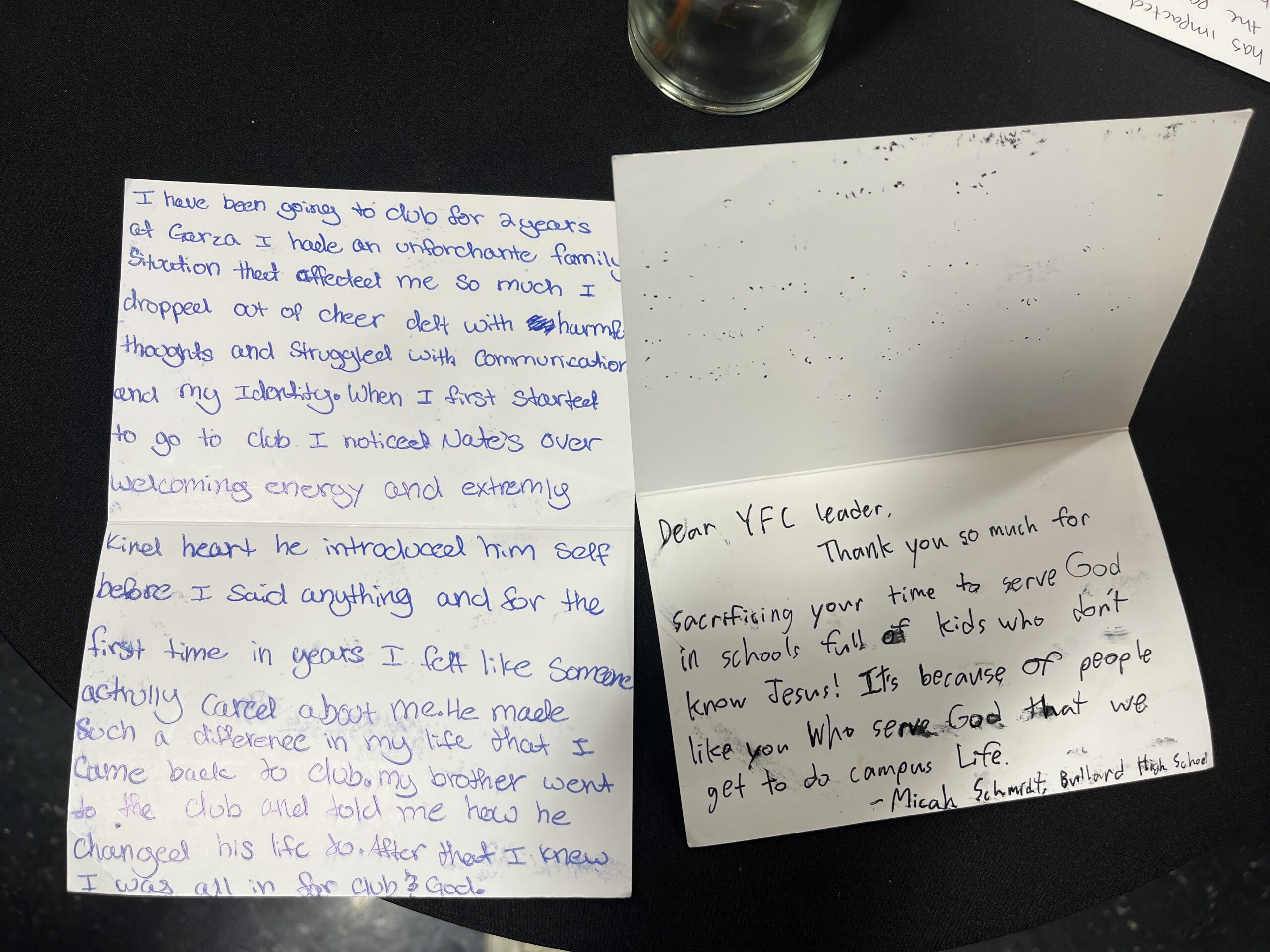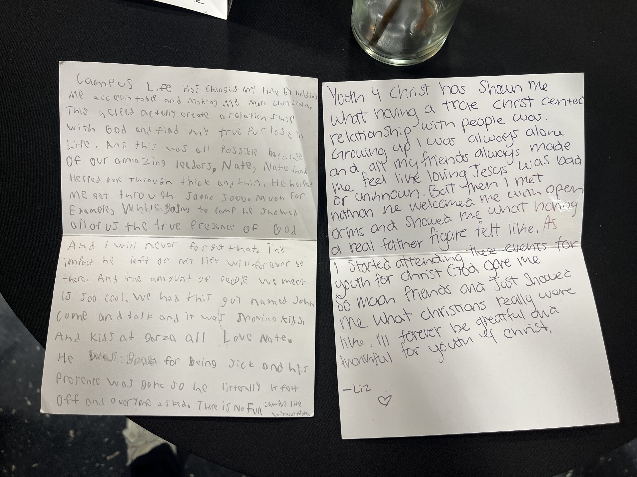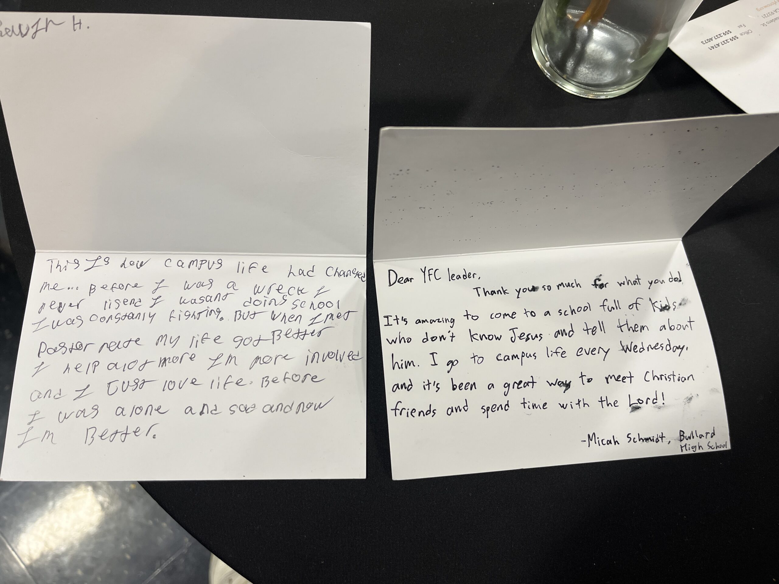 Recently students in Campus Life wrote letters for their YFC Ministry Leaders. Here’s what they said!
