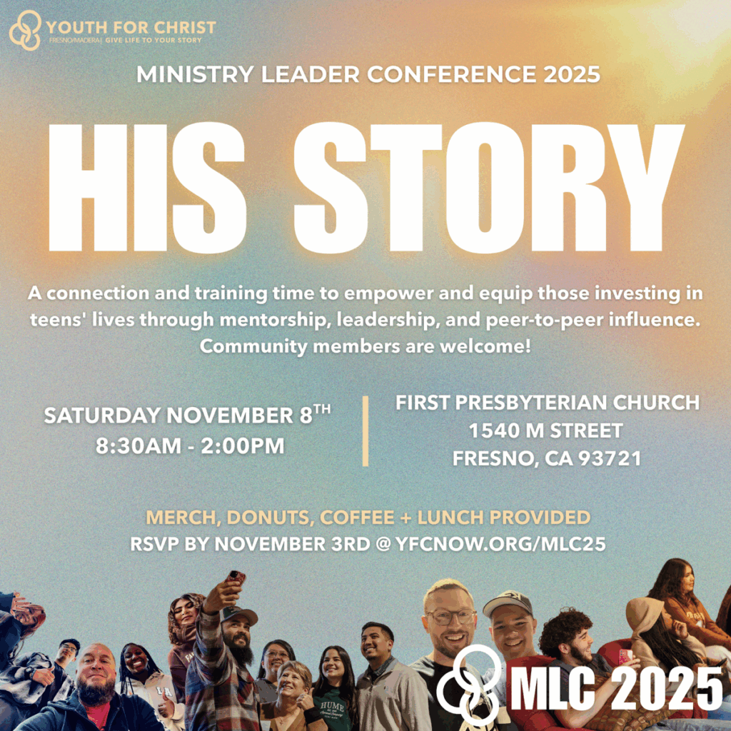 Join us for equipping, encouragement, and community as we lean into YFC’s Rally Cry: every leader will know, experience, and share God’s Story. Together we will explore how the Gospel transforms us personally and empowers us to reach the next generation.