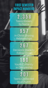 Help connect 1,500 spiritually lost teens in Christ-sharing relationships this year! Together we'll raise up lifelong followers of Jesus.